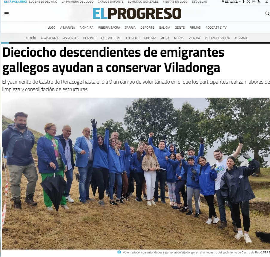 El yacimiento de Castro de Rei acoge hasta el día 9 un campo de voluntariado en el que los participantes realizan labores de limpieza y consolidación de estructuras 09 Sep 2024 El Progreso https://www.elprogreso.es/articulo/a-chaira/dieciocho-descendientes-migrantes-gallegos-ayudan-conservar-viladonga-castro/202409051547141782455.html Compartir