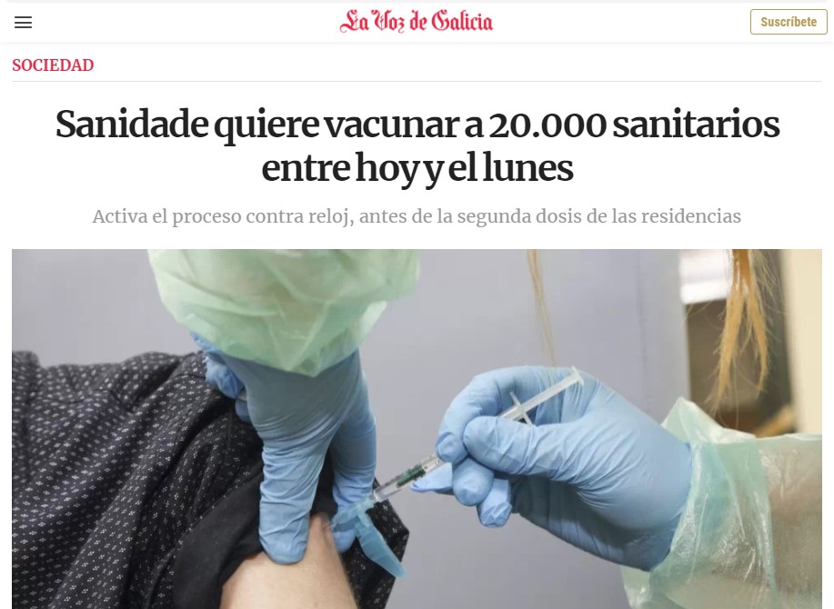 La Voz de Galicia https://www.lavozdegalicia.es/noticia/sociedad/2021/01/13/sanidade-quiere-vacunar-20000-sanitarios-hoy-lunes/0003_202101G13P5991.htm