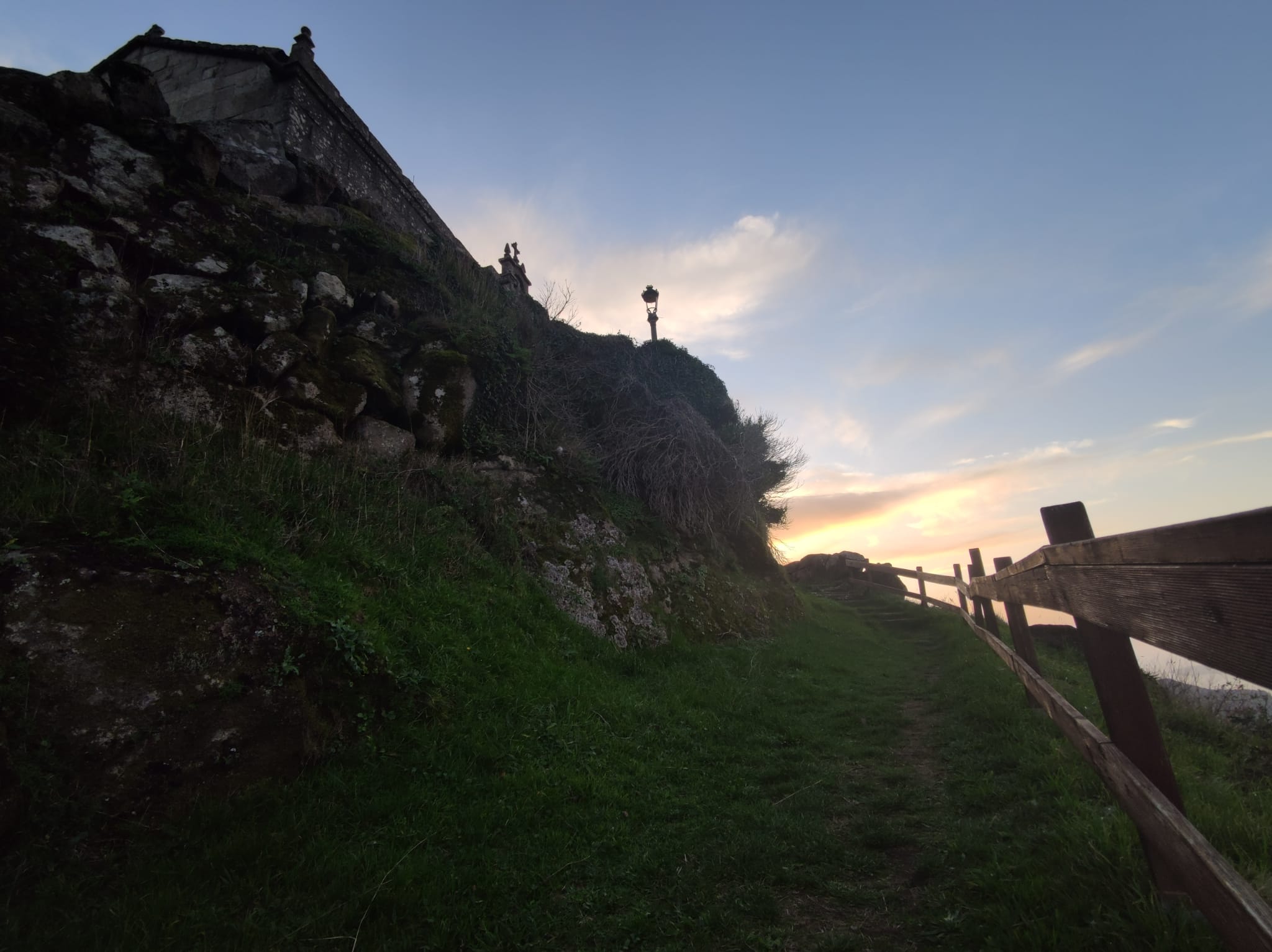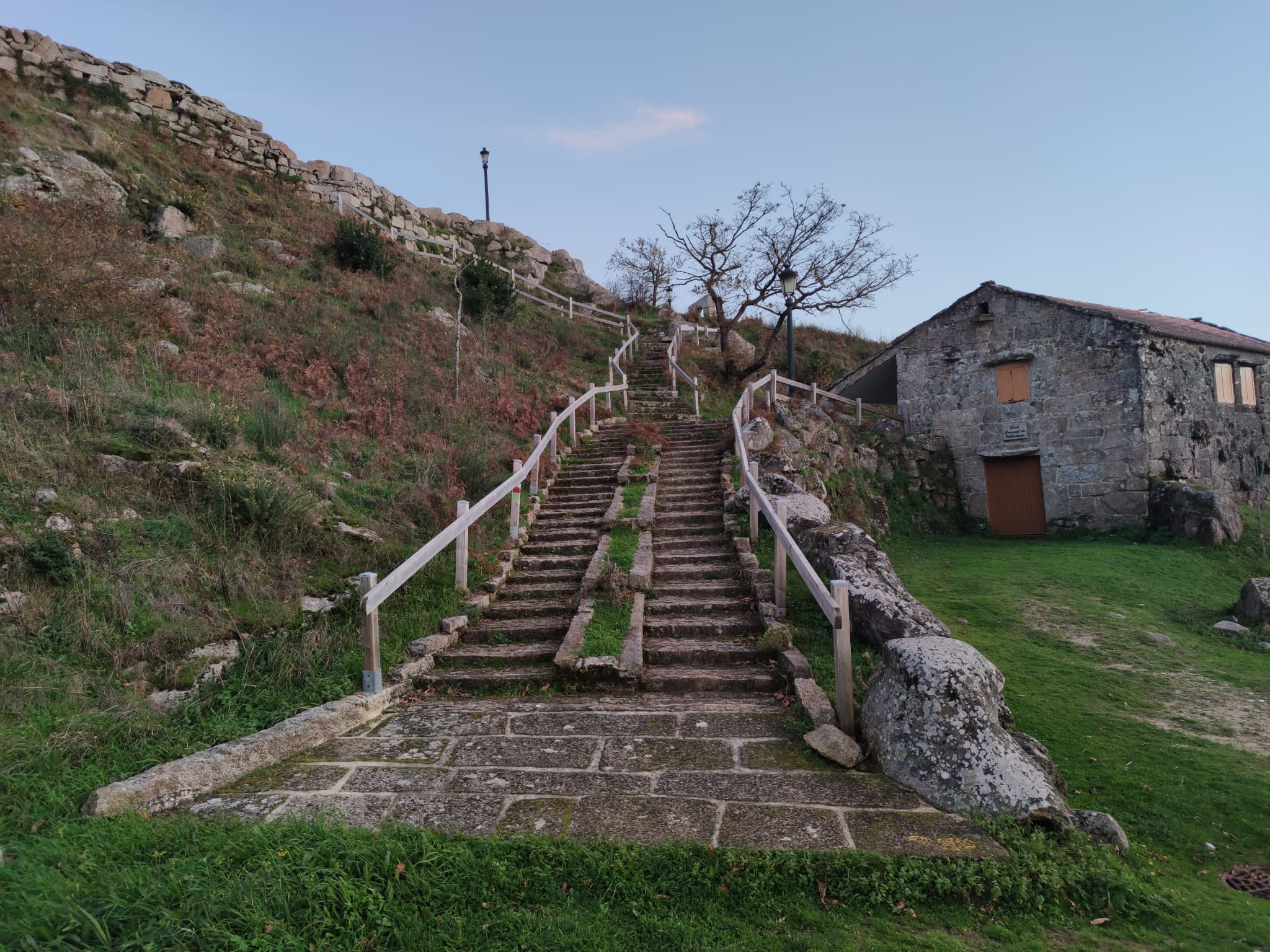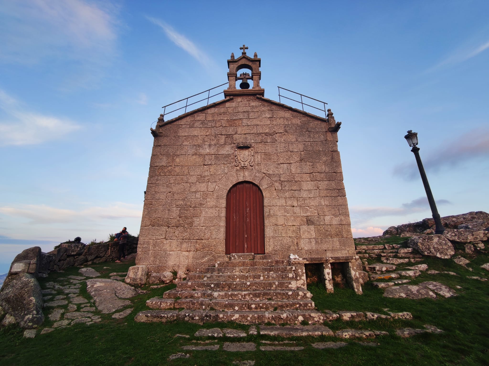 Dos senderos suben hacia ella. Uno, de arena y piedras flanqueadas por arces que mezclan rojos distorsionados de naranja, salpicados de retamos amarillos que dulcifican una escena dominada de otoño hasta la médula. El otro, una escalera, que serpentea alejando Valladares, Vigo, la Ría, la ciudad, el más allá.