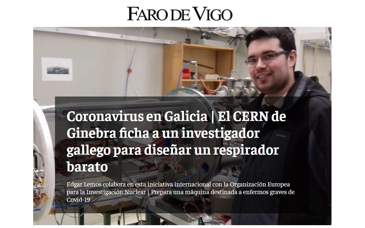 - Edgar Lemos colabora nesta iniciativa internacional coa Organización Europea para a Investigación Nuclear. Prepara unha máquina destinada a enfermos graves de Covid-19